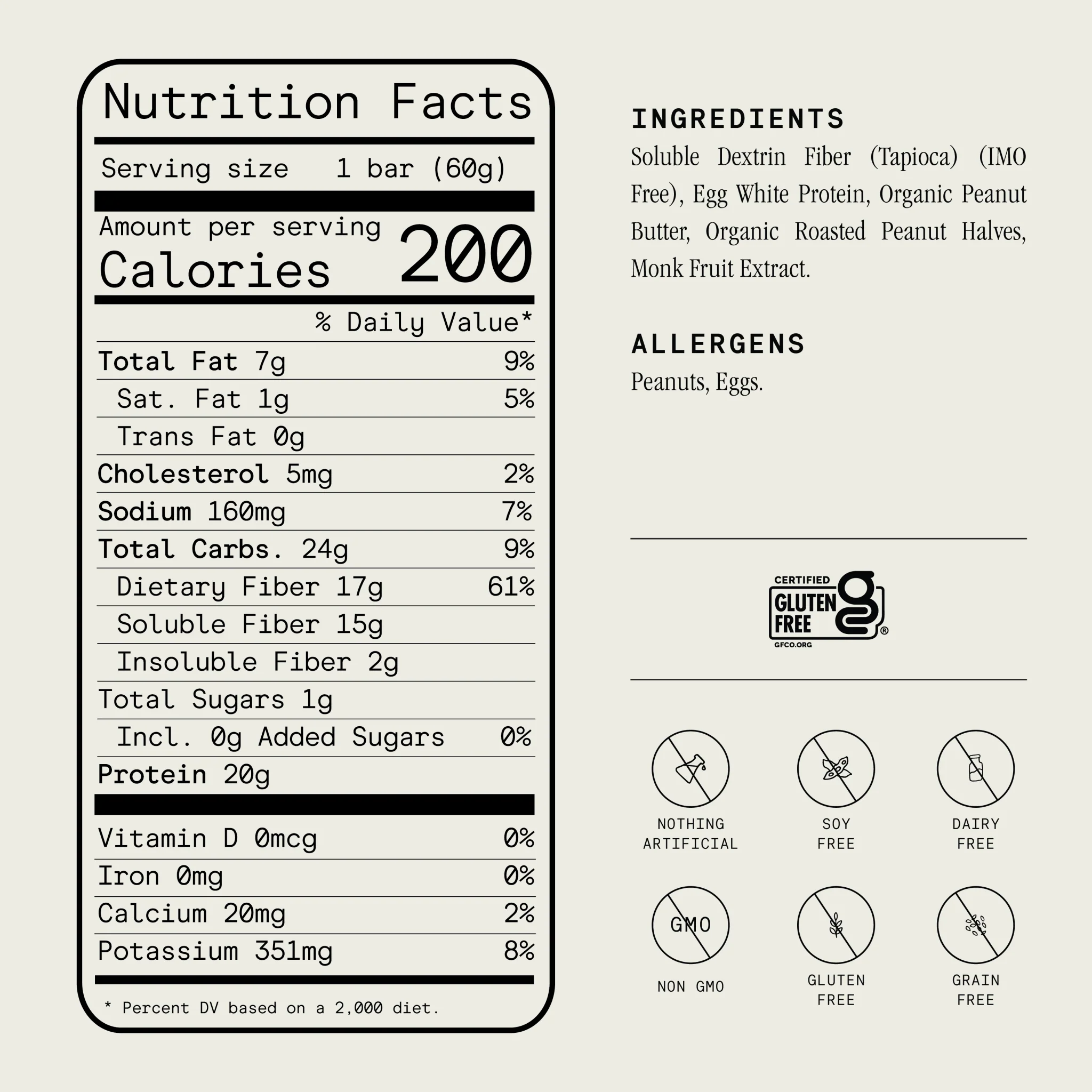 With 20g of protein and 17g of fiber per bar, it delivers exceptional performance while staying true to our ethos of simplicity and purity.